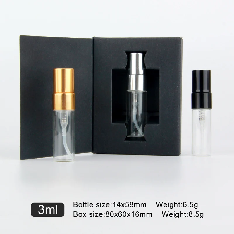 Product Name: 100ピース/ロット3ミリリットル包装箱ミニ香水瓶とガラス香水瓶カスタマイズ可能なロゴ