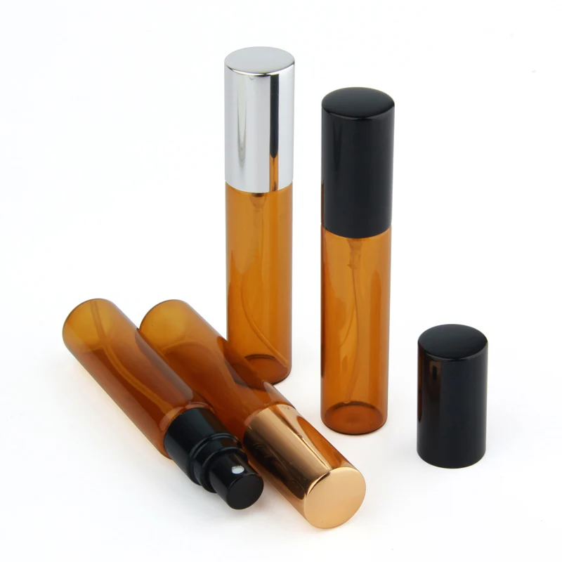 Product Name: 100 ピース/ロット 10 ミリリットル空のアトマイザー香水瓶アンバースプレーガラスアルミキャップ詰め替え香水瓶バイアル旅行ボトル